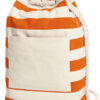 Junger Rucksack mit frischem Blockstreifen-Dekor | Großzügiger Schnitt mit geradem Rücken | Große Tasche vorne mit Klettverschluss | Dekorative Ösen und Träger aus dicker Baumwollkordel | Lieferung ohne Inhalt/Deko | Kapazität: 22 Liter