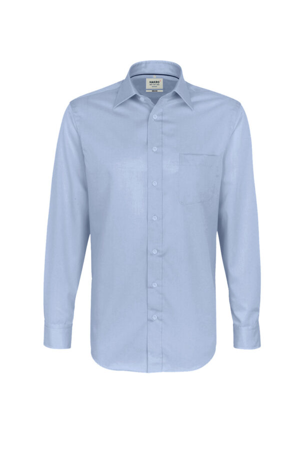 Klassisches Hemd mit Kent-Kragen und aufgesetzter Brusttasche. Knöpfe Ton in Ton (Farbe Himmelblau: Knöpfe in Farbe Weiß), Paspel aus dunkelblauem Satin an der inneren Kragennaht, eingearbeitete Kragenstäbchen, doppelte Schulterpasse, weitenverstellbare Manschetten und leicht gerundeter Saum. Formstabiler, strapazierfähiger und bügelfreier Baumwoll-Popeline. Verfügbar auch als Damenmodell. Lockere Passform: Comfort Fit.