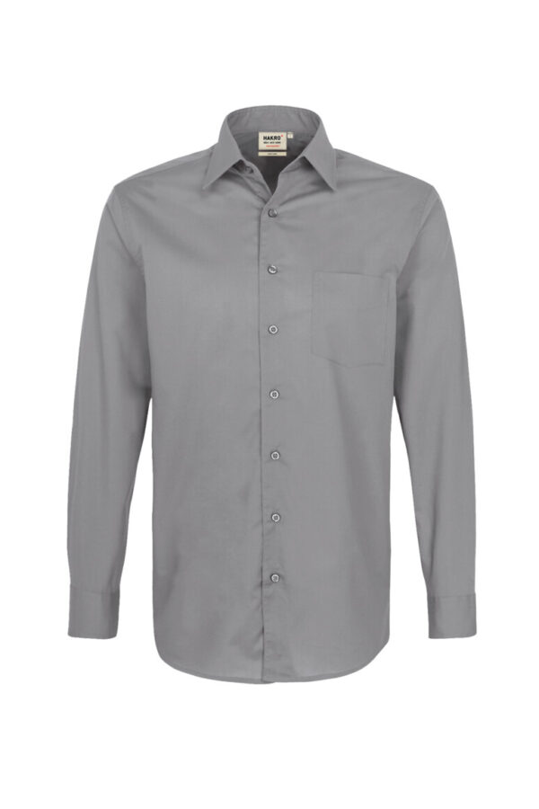 Besonders strapazierfähiges Hemd mit Kent-Kragen und aufgesetzter Brusttasche. Knöpfe Ton in Ton, eingearbeitete Kragenstäbchen, doppelte Schulterpasse, Doppelkappnaht an den Seitennähten, weitenverstellbare Manschetten und leicht gerundeter Saum. Besonders pflegeleichtes und funktionelles Gewebe aus MIKRALINAR®, dem HAKRO Performance-Materialmix aus Baumwolle und Polyester. Verfügbar auch als Damenmodell. Lockere Passform: Comfort Fit.