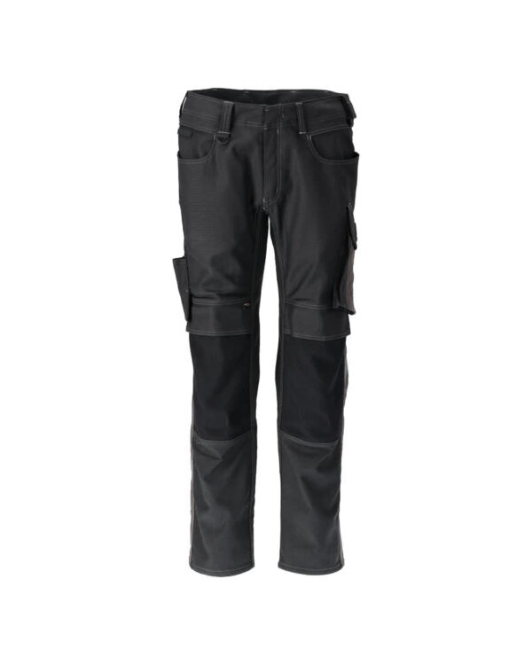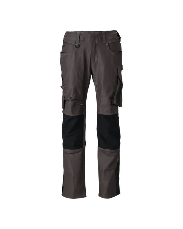 Zweifarbig. Dreifache Kappnähte an den Beinen und im Schritt. Niedrige Taille und formgeschnittener Bund. Hosenbeine sind ergonomisch geformt. Gürtelschlaufen. D-Ring. Verdeckter Knopfverschluss. Hosenschlitz mit Reißverschluss. Werkzeugschlaufe am Bund. Geräumige Vordertaschen – eine davon mit leicht zugänglicher Handy-Tasche. Hammerschlaufe, verstellbar. Verstärkte Gesässtaschen. Schenkeltasche mit Handyfach, Patte und verdeckten Druckknöpfen. Zollstocktasche, verstärkt. Stifttasche. Knietaschen aus super strapazierfähigem CORDURA® (1000 D), höhenregulierbar und mit Patte sowie Eingriff von oben. Reflexeffekte. Zu diesem Modell empfehlen wir folgenden Knieschutz: 00418-100, 00718-100, 20118-915 oder 50451-916. Zertifiziert zusammen mit Kniepolstertyp SHORT oder LONG gemäß EN 14404.