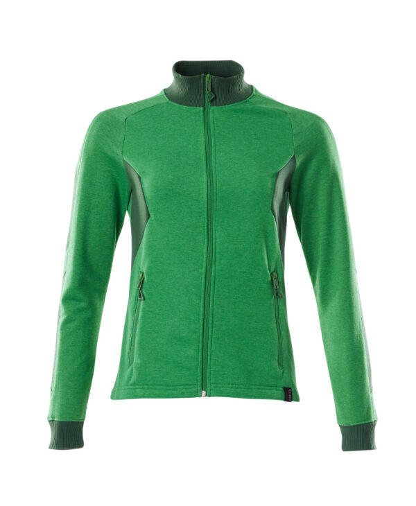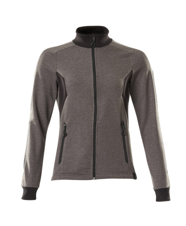 Premium Performance. Damen-Passform. Kräftige Qualität. Gebürstete Innenseite. Reißverschluss, durchgehend. Vordertaschen mit Reißverschluss. Rippenbündchen am Hals und an den Handgelenken. Nackenband. Druck an verschiedenen Teilen des Produktes.